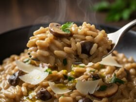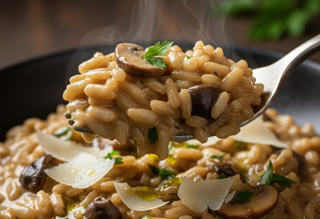 Risoto Perfeito de Cogumelos Ingredientes: 1 xícara (200g) de Arroz Arbóreo ou Carnaroli200g de cogumelos frescos (Paris, Shiitake, Portobello) 1/2 cebola média, picada finamente 2