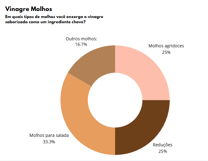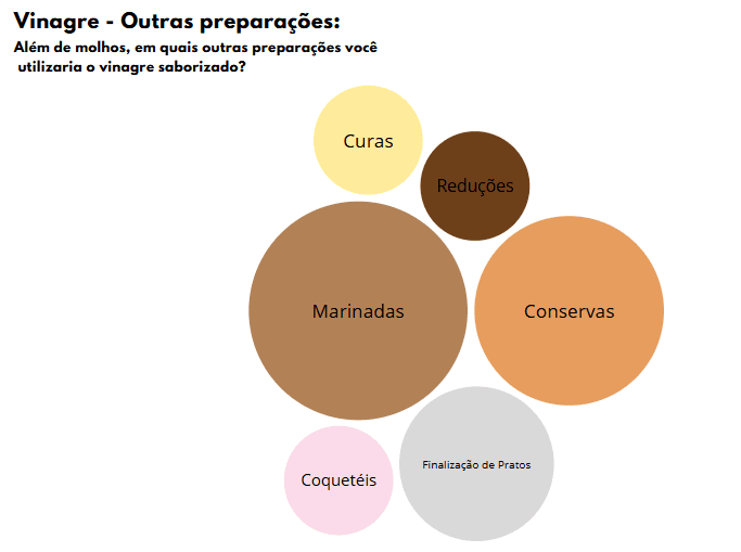 • A maioria dos chefs vê potencial na substituição do vinagre de maçã e balsâmico, enquanto alguns mencionam outros tipos de vinagre.