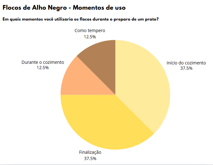 • Importância da informação e da experiência: Os chefs valorizam as informações sobre os produtos, como detalhes nutricionais, sugestões de uso e receitas. Acreditam que a experiência com o produto é fundamental para descobrir novas possibilidades e aprimorar o uso do alho negro na cozinha.