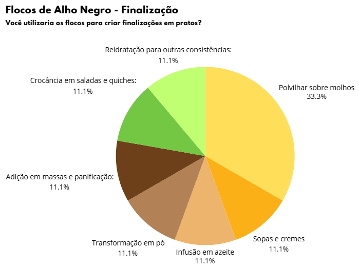 • Variedade de produtos: 5 chefs esperam uma variedade de produtos à base de alho negro, como diferentes formatos, derivados e combinações, para atender às diversas necessidades e ampliar as possibilidades de uso.