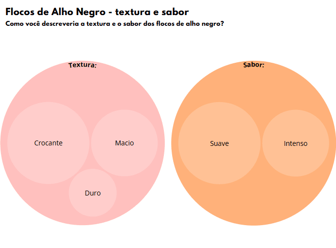 • Flocos de alho negro: Sabor crocante e intenso, com necessidade de reidratação para melhor aproveitamento.